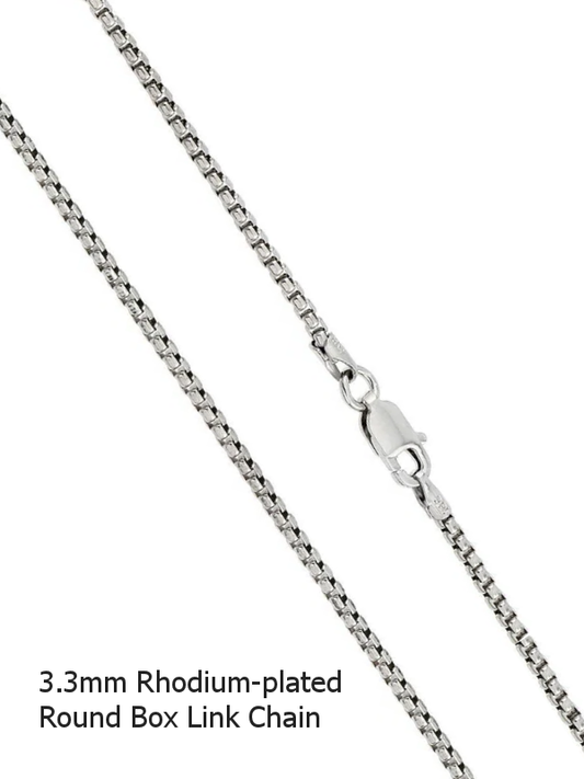 22" - 3.3mm Round Box Link Rhodium-Plated Sterling Silver Chain