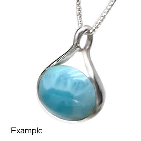 Note: The pendant in the photo is a sample pair and not the exact one you will receive. Every piece in our collection features AAA-grade Larimar, carefully chosen for its exceptional color, clarity, and character. As a natural gemstone, each Larimar stone is one of a kind, with unique variations in pattern and hue—just like the ocean it comes from. These subtle differences are part of what make your jewelry truly special and uniquely yours. This includes a sterling silver chain in a choice of different lengths. The exact link styles vary. They measure at least 1.0mm thick with a C-ring clasp.
