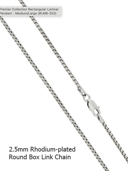 Note: One of the photos shows the pendant inside a standard 3x3-inch box for scale reference. This pendant is sold without a chain. You may add the Italian-made, rhodium-plated sterling silver round box chain as shown in the photos. It measures 2.5mm in width, features a lobster claw clasp, and is available in a variety of lengths to suit your style.
